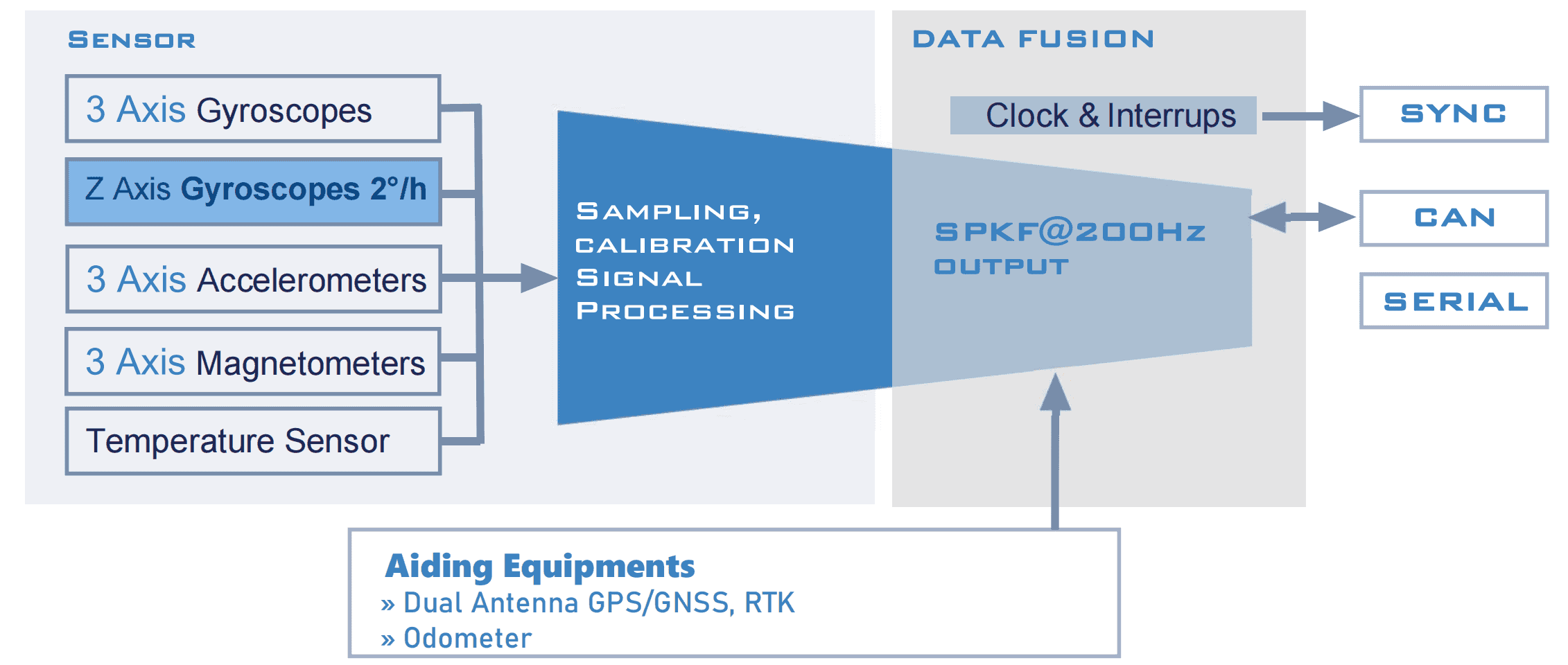 DETA20系列产品的传感器包含四轴陀螺仪、三轴加速度计、三轴磁力计以及温度计,具有一个强大的Sigma-Point卡尔曼滤波器(SPKF),以及一套高性能组合导航算法,高达1000Hz的传感器采样频率和圆锥和划船运动补偿,实时监控环境温度的变化,并在线的估计传感器的误差,可以识别野值和测量异常并隔离故障,可以检测结构化的磁场并补偿,具有抗磁干扰能力。FDI的行业领先的算法可方便的接入外部视觉、雷达等速度、位置、航向辅助设备进行组合导航,并提供了强大的交互界面和在线校准的算法,方便快速安装使用。