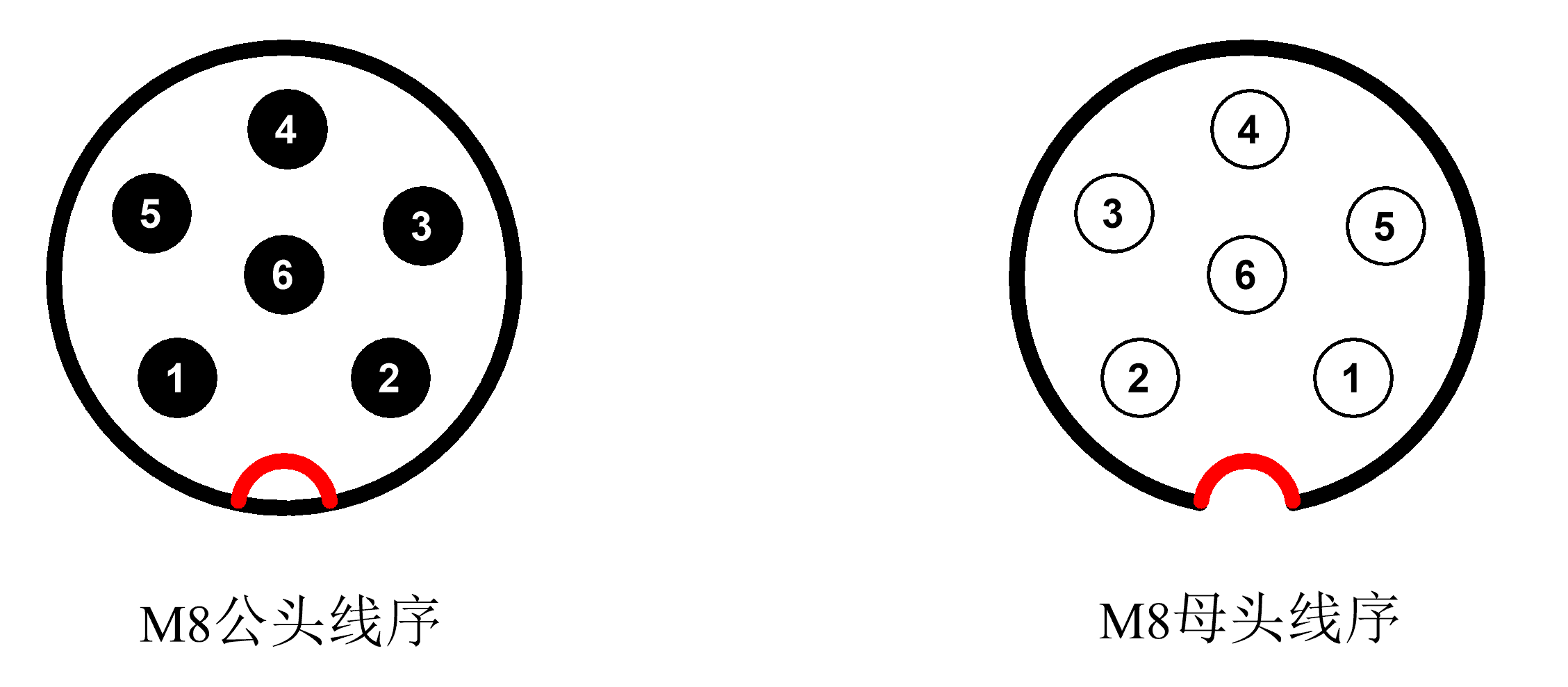 IMU模块端M8公头和配对的母头线序如下: