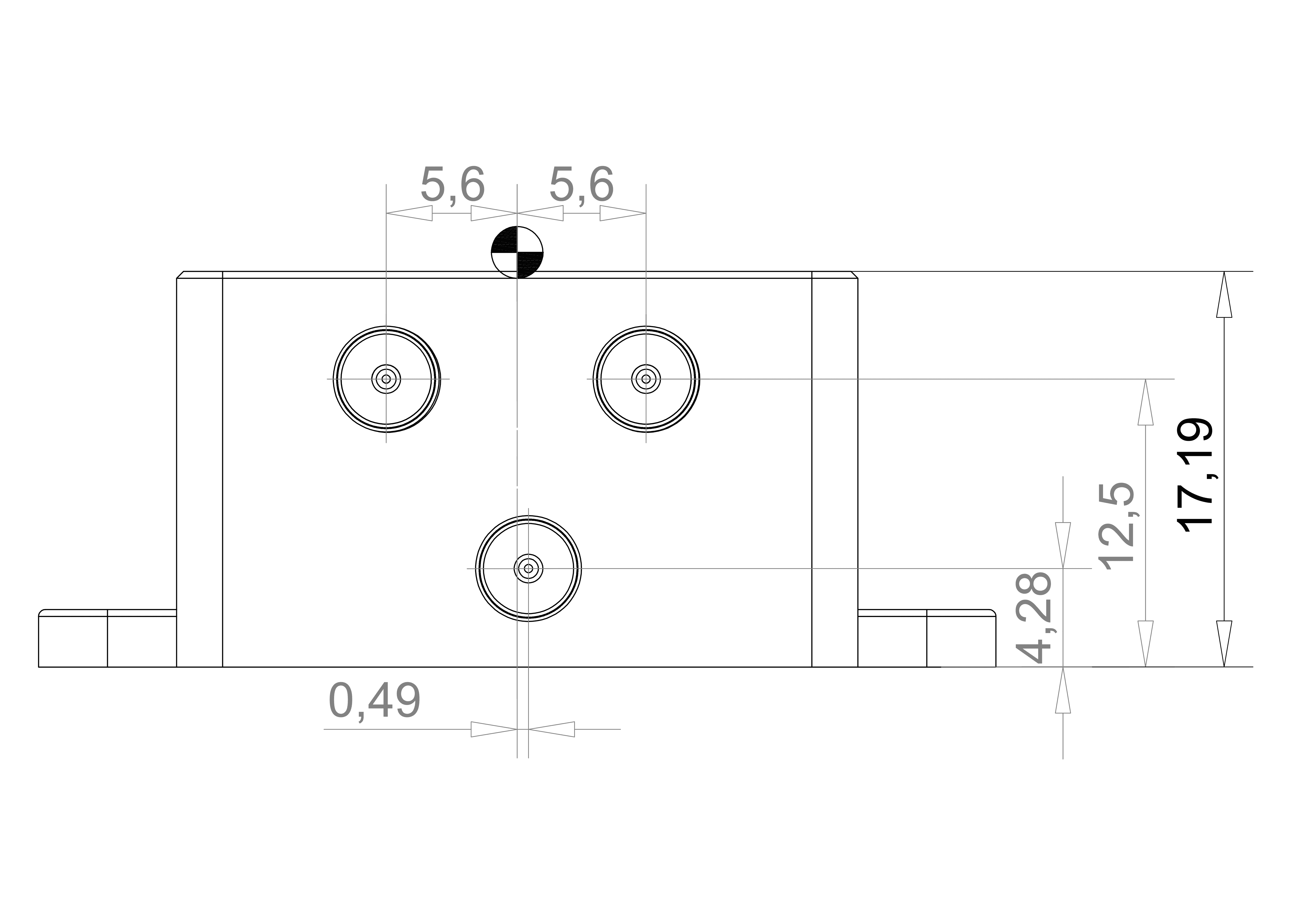 为了获得最佳的测量精度,需要良好的机械对齐。在制造过程中,DETA100测量框架与滚轴、俯仰角和偏航角度的底板仔细对齐到0.05°。 为了简化偏航对齐(Z轴),底座有两个对齐孔Ø2mm H8,保证两个锥形销Ø2mm h7的偏航对齐优于±0.05°。 传感器(身体)坐标框架