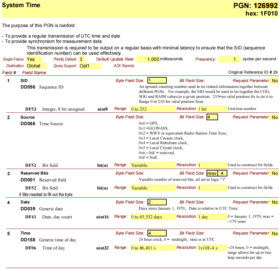 简单来说,PGN是NMEA2000的数据ID,也可以理解为CAN通信中头帧的部分数据,注意在使用CAN总线接收NMEA2000协议数据包时使用的CAN总线的头帧拓展帧模式,即CAN的头帧具有29bit。除去PGN所包含的信息,此时的CAN头帧还包括了设备源地址,目标地址以及优先级。