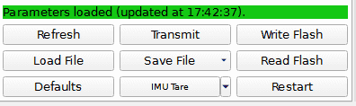 • Gyro Tare:陀螺仪调平按钮。该按钮的功能是重新计算陀螺仪静态零偏,从而使减去零偏之后的陀螺仪三轴角速度回到零附近。该按钮必须在模块静止时操作,否则计算出来的零偏有误,从而导致姿态漂移。如果用户在静止时发现姿态角在漂移,一般是陀螺仪静态零偏计算有误,建议点击该按钮进行重新校准,点击完该按钮后需要点击 Write Flash 按钮进行参数保存。