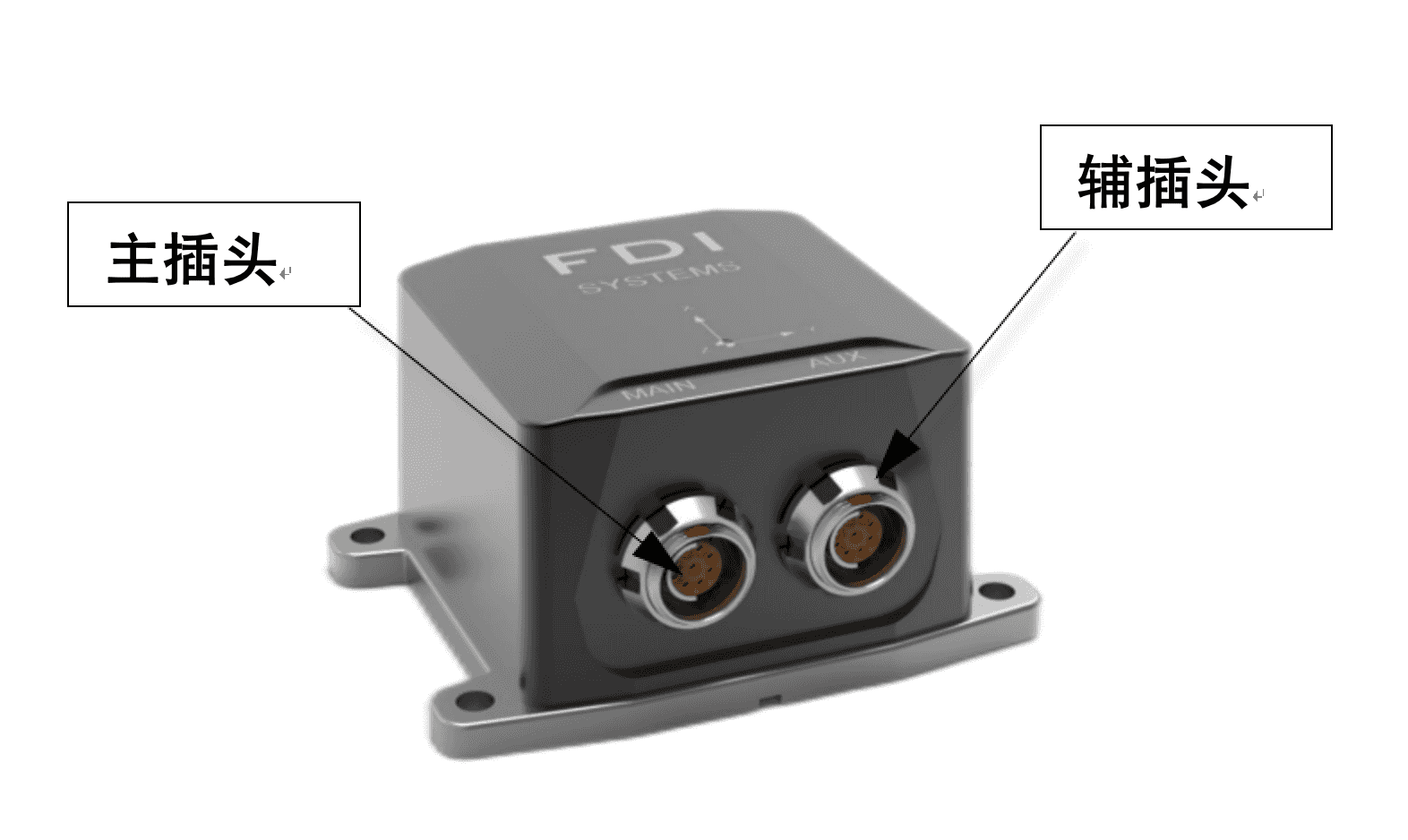Epsilon系列的连接器全部放置在前板上。连接器的识别通过激光镭雕标记在外壳上。 FDISYSTEMS 为 Epsilon系列提供了最多两个评估航空插头电缆线主接口MAIN和辅接口AUX,用于快速连接到 Epsilon系列。这些插头和线通过注塑封装的一体化工艺,在正常使用时具有IP68的防护等级。主接口主要具有供电和两路RS232和可编程多功能复用端口GPIOS功能。辅接口主要提供 RS422/CAN 以及内日志读取的USB口,为了在应用程序中快速测试,主接口线束提供了一分四的接口,并且具有标准的 DC 接口和工业标准9引脚 DSUB 母头接口。