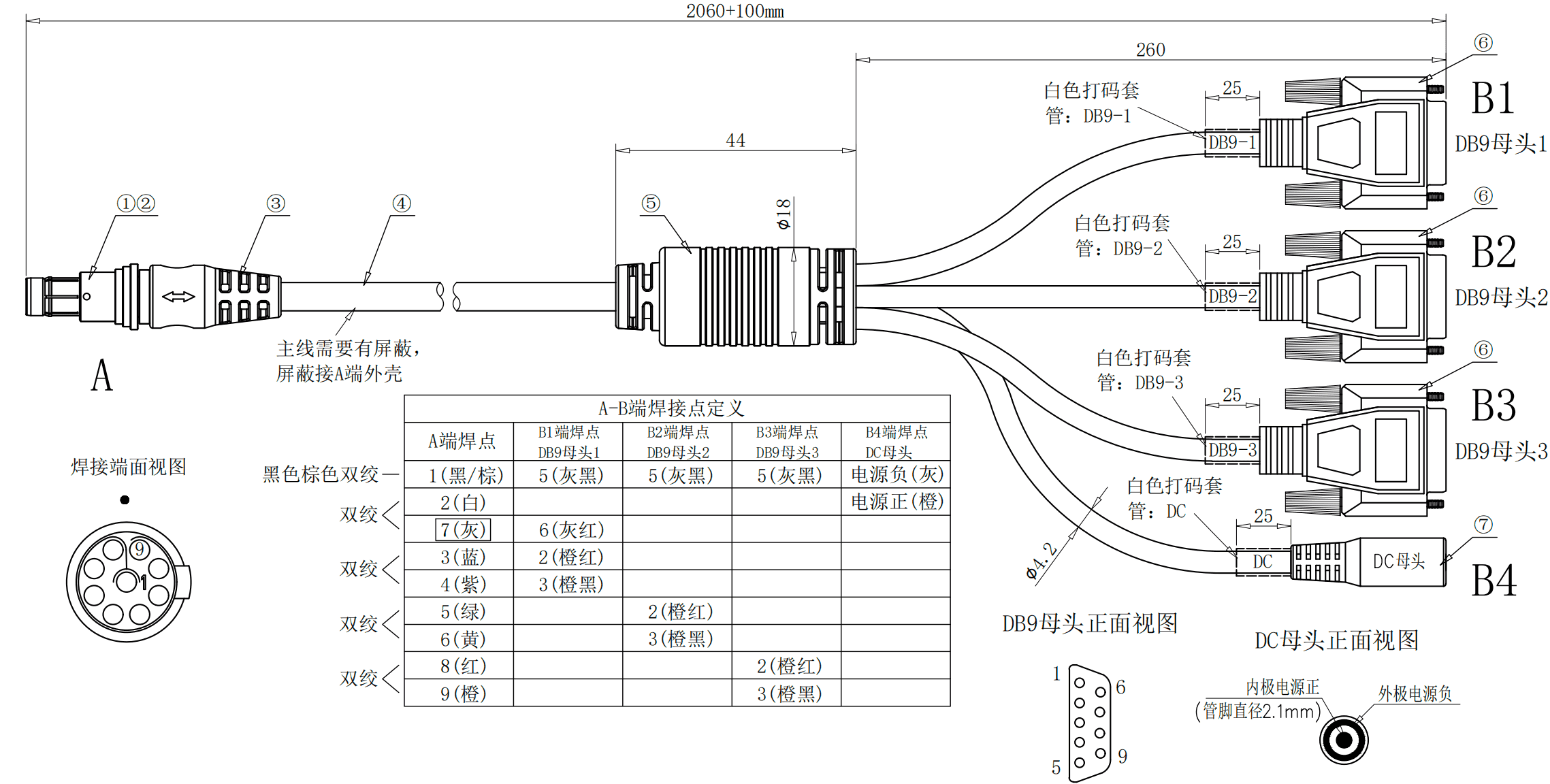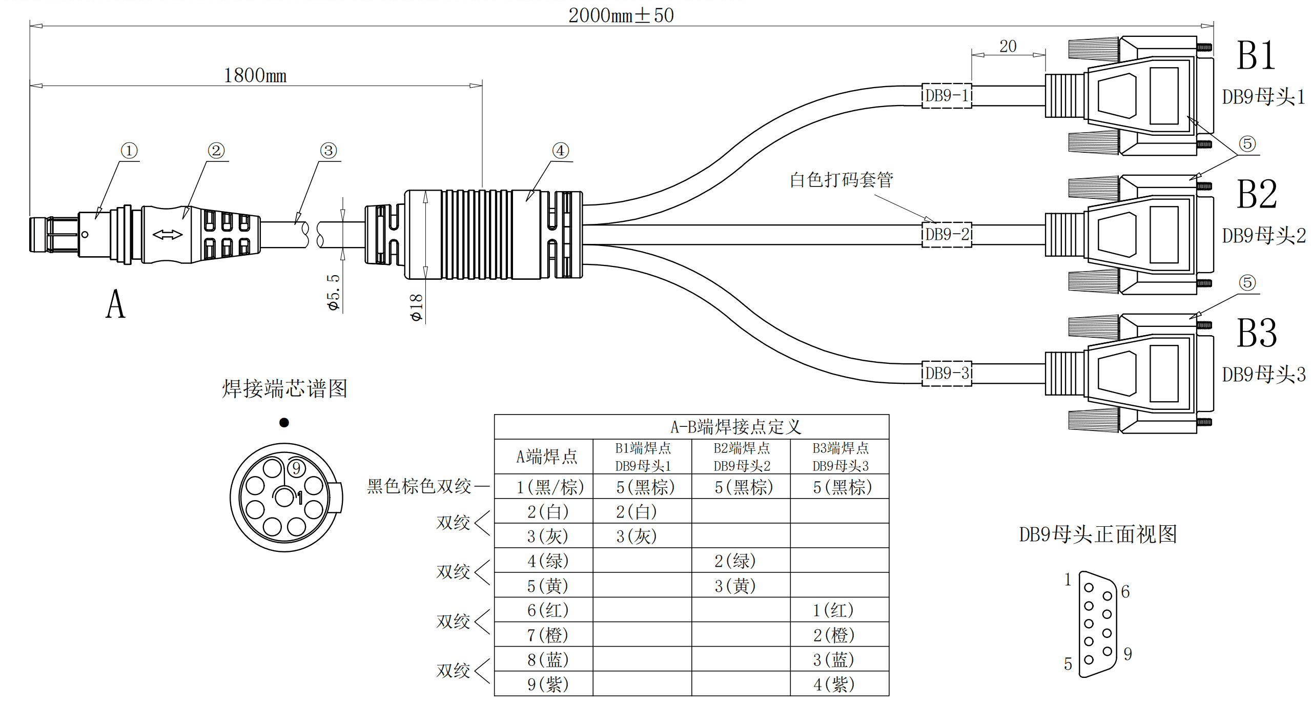 | 102fPin | Colour | Function | CANDB9-1 | USB DB9-2 | 422DB9-3 |