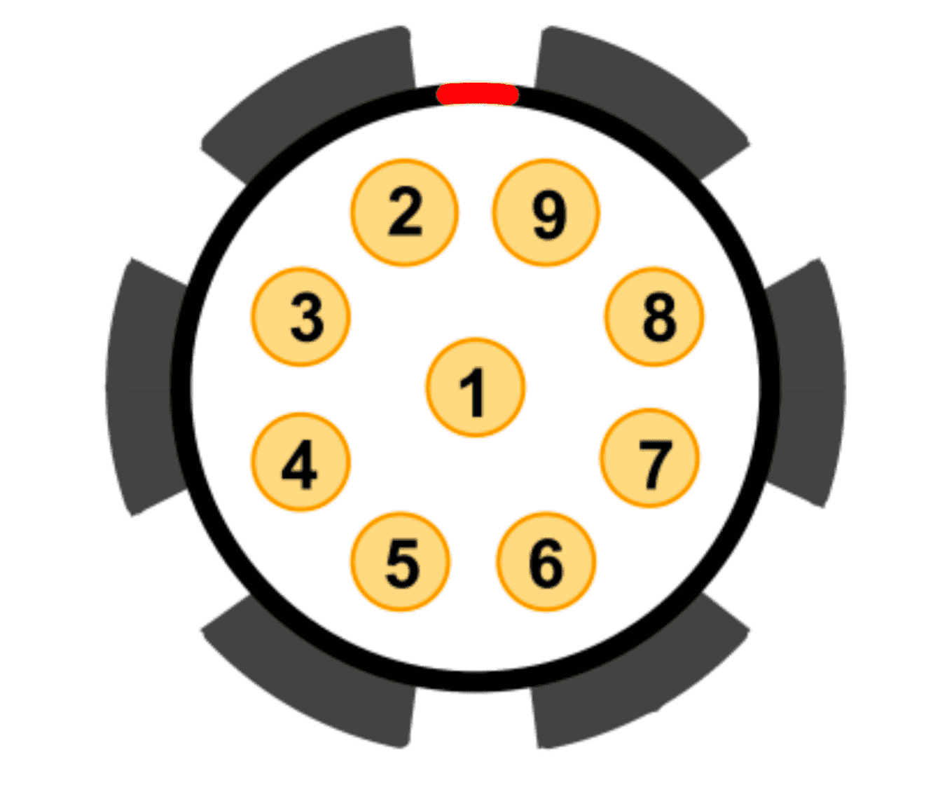 | Pin | Colour | Function | Primary DB9-1 | AuxiliaryDB9-2 | GPIODB9-3 | PowerDC |