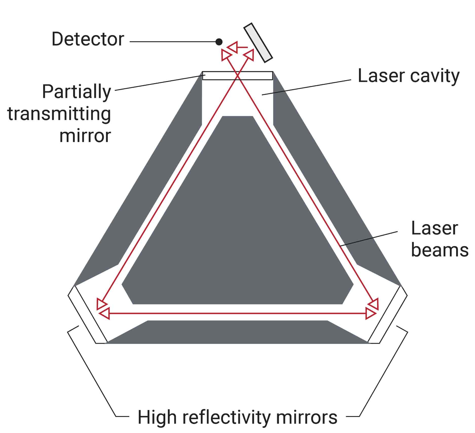 环形激光陀螺仪(RLG)是一种高性能光学陀螺仪,利用萨尼亚克效应来检测旋转。如图下所示,RLG 利用闭环激光腔(通常充满氦氖气)来执行测量。激光器本身集成在腔室内,使得外部观察到的干涉图案与旋转角度成正比。这些陀螺仪是目前性能最高的陀螺仪,加上其复杂性,也使其成为最昂贵的陀螺仪。