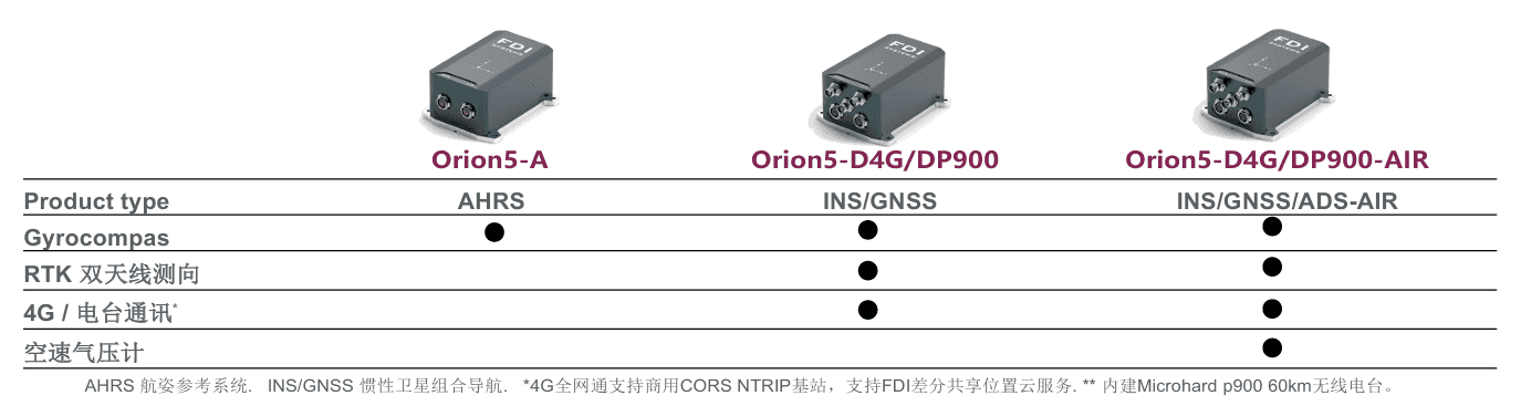 | Orion5-A | AHRS,陀螺罗经,无GNSS辅助 | |